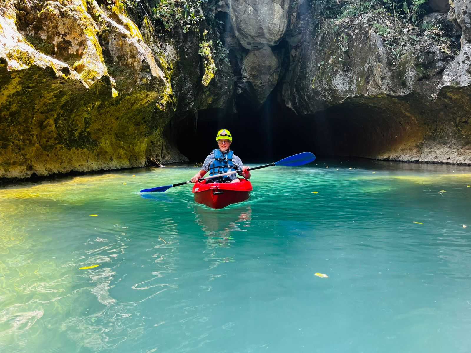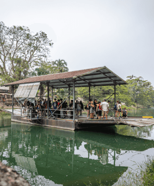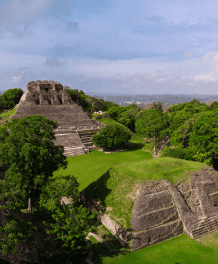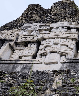 Xunantunich sits just a short drive from San Ignacio, right near the Belize-Guatemala border. But getting there is half the fun. You’ll cross the Mopan River on a hand-cranked ferry—old-school but still going strong. Once you’re across, it’s a one-mile journey uphill, and you can hike or hop in one of our vehicles—whatever suits your style. When you reach the site, our guide takes over, leading a 3 to 4-hour walk through the ruins and the stories they still hold.