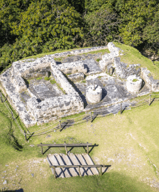 The site's most prominent feature, El Castillo (Structure A-6), stands at the southern end of Plaza A-1, towering 130 feet high. It may have functioned as an ancestral shrine for the ruling family, where they were either buried or commemorated in sculpted friezes.